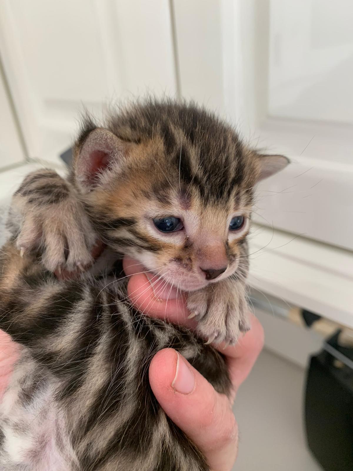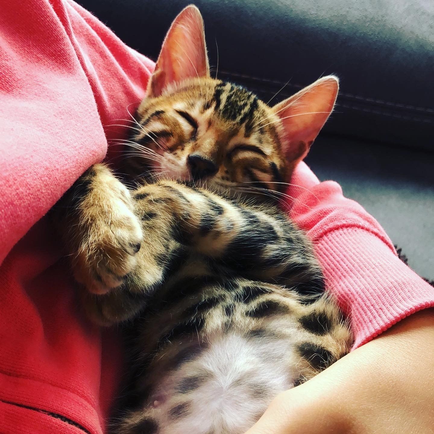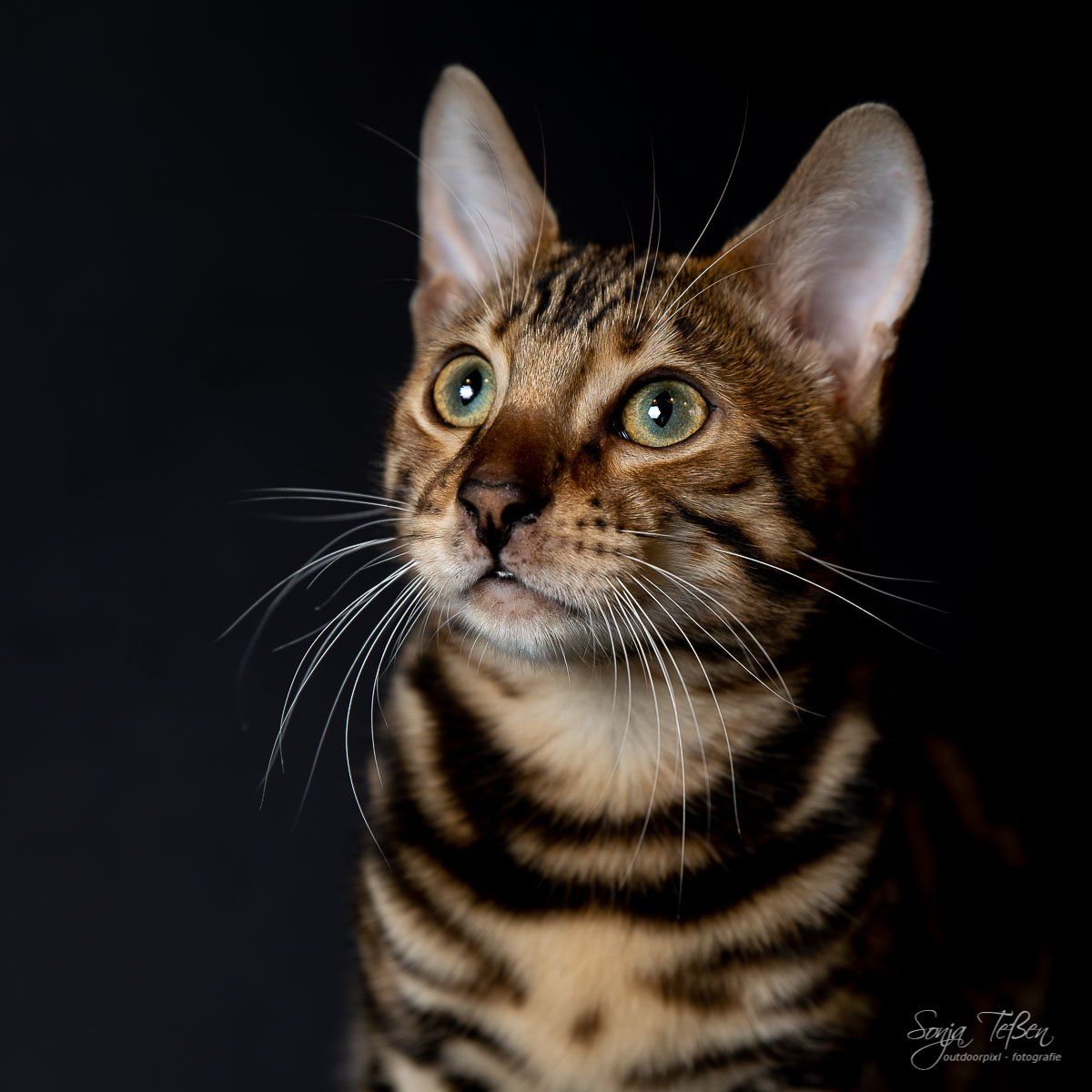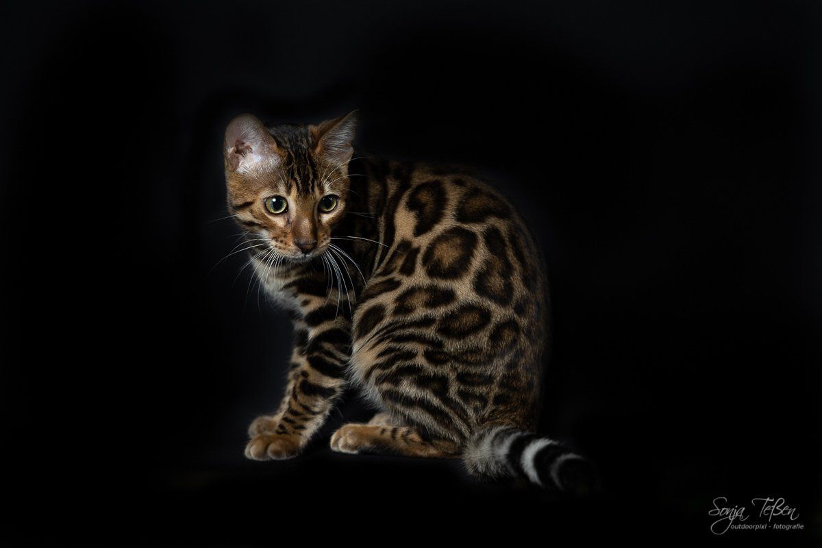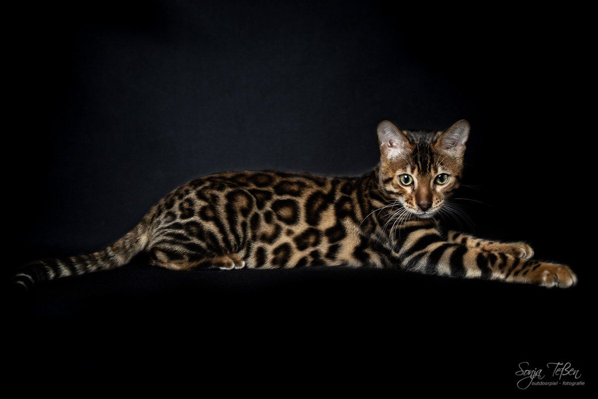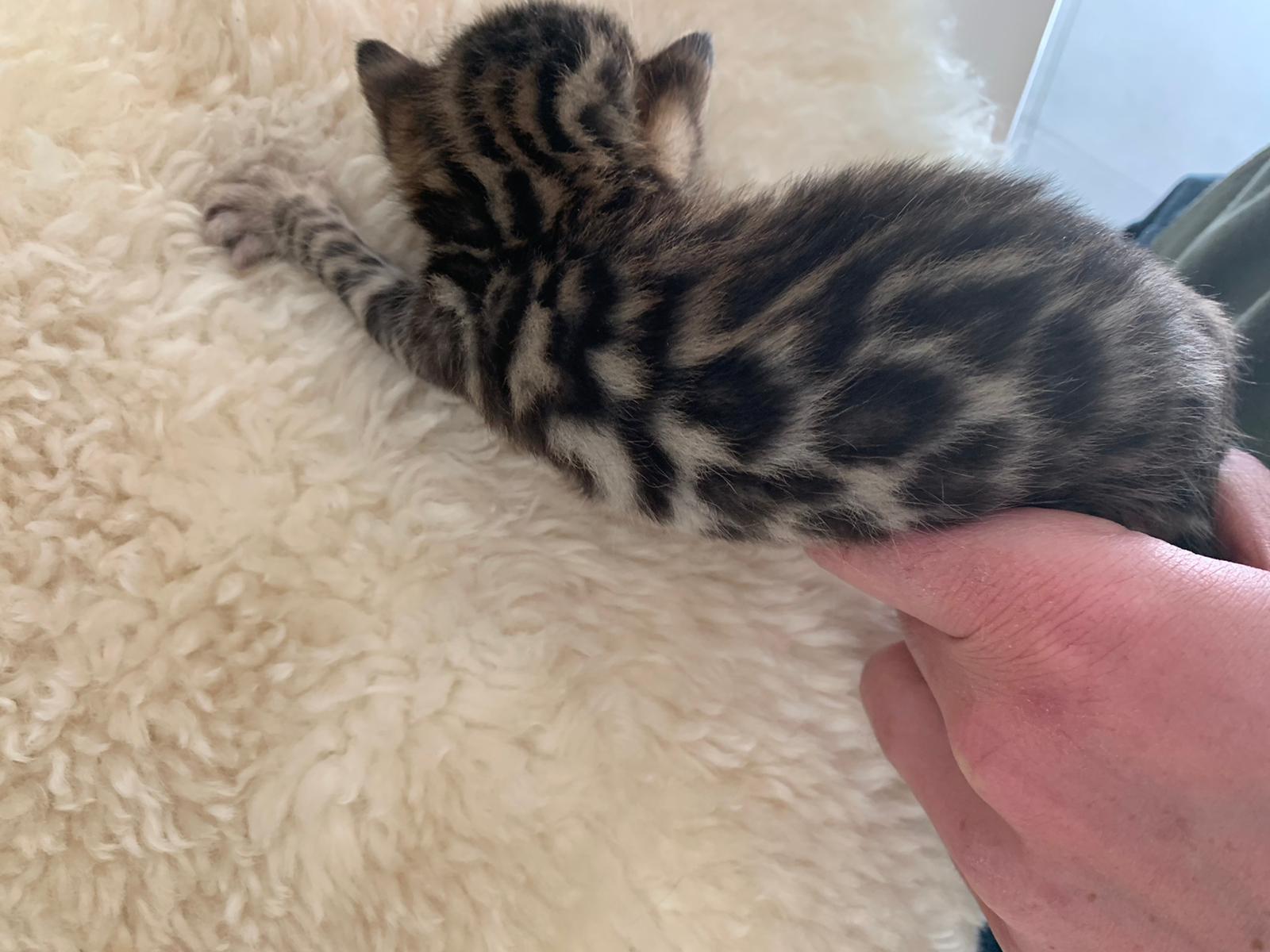 Er ist ein sehr ruhiger und gemütlicher Bengale, aber mit seinen Mädels tobt er gerne durchs Haus.